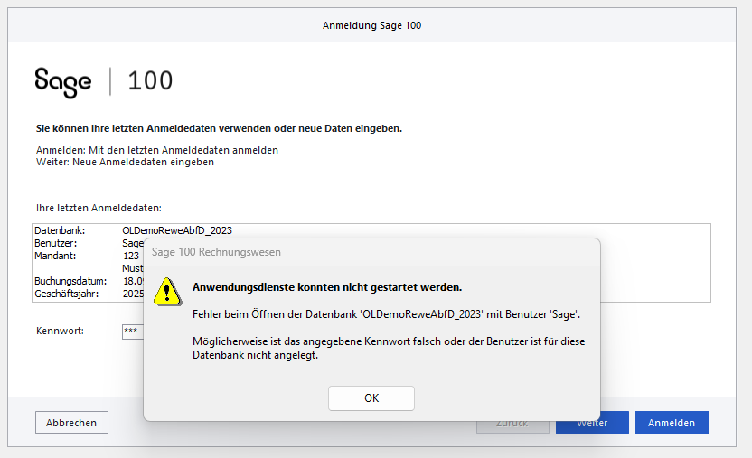 Nach einem Update oder einem Support kann es gut vorkommen, dass der Benutzer Sage der zuletzt angemeldete Benutzer war.