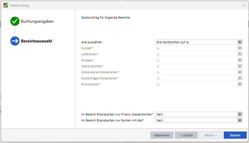 Saldovortrag eine Eingrenzung der Bereiche vornehmen.