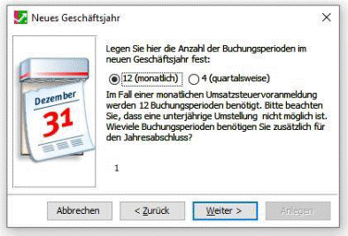benötigten Buchungsperioden für das neue Geschäftsjahr – im Regelfall 12