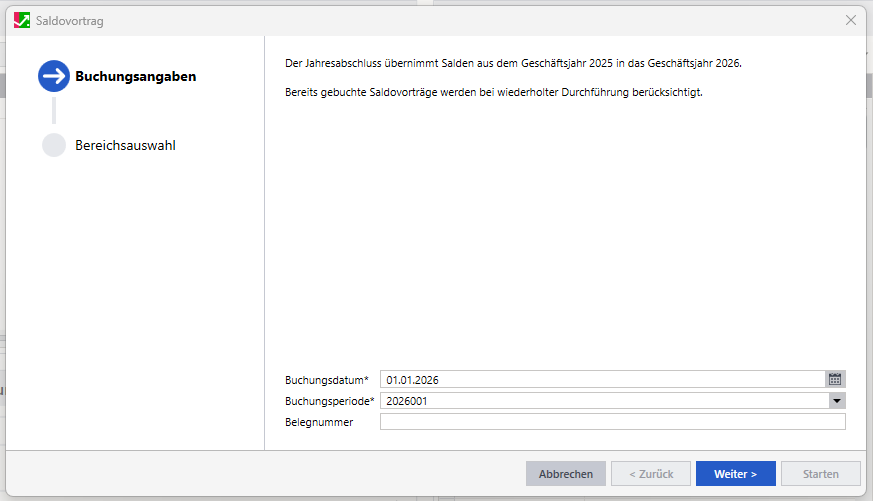 Die Saldovortragsbuchungen werden in eigenen Sitzungen im neuen Geschäftsjahr