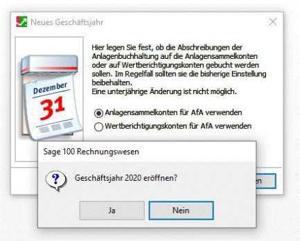 Sie nach der Anlage des neuen Geschäftsjahres über den Sage-Administrator für