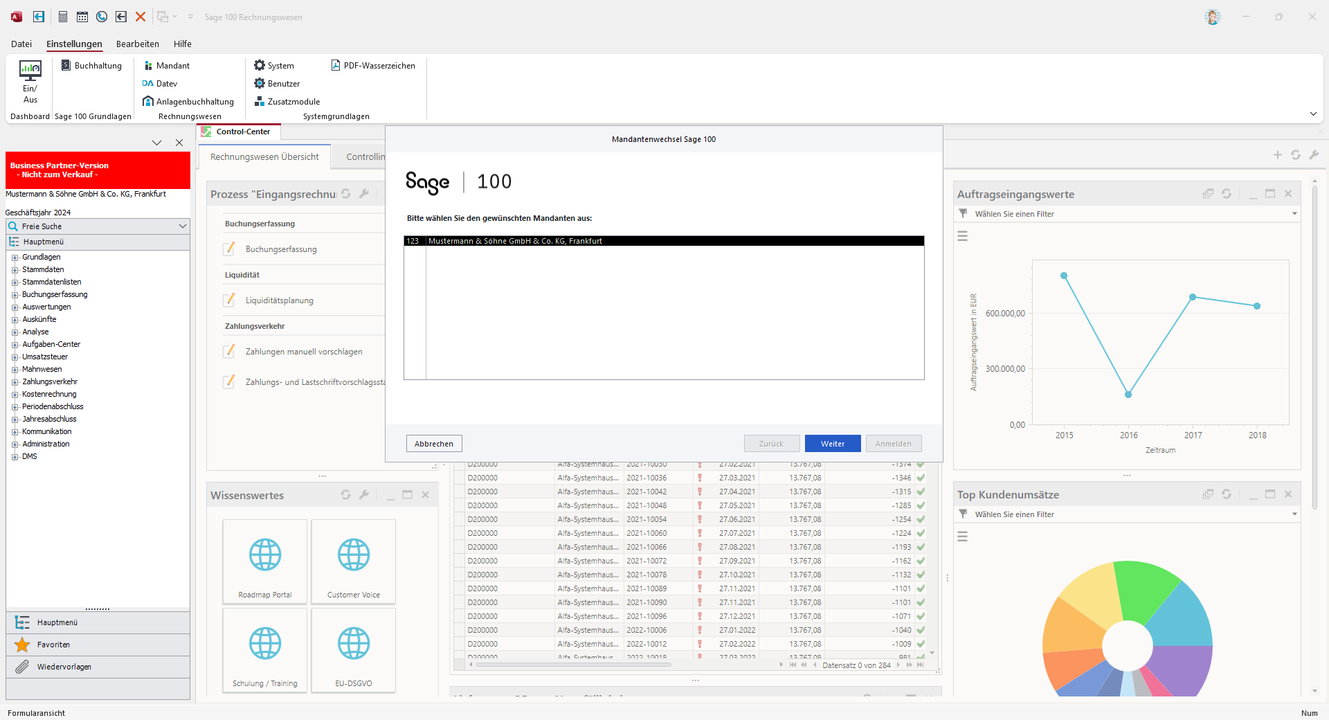 Hier kann dann, wie beim Start der Anwendung der entsprechende Mandant ausgewählt werden.